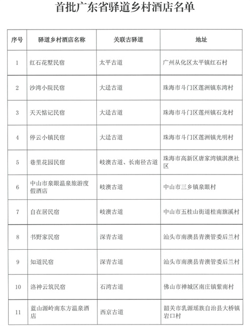 中山两处上榜首批广东省驿道乡村酒店